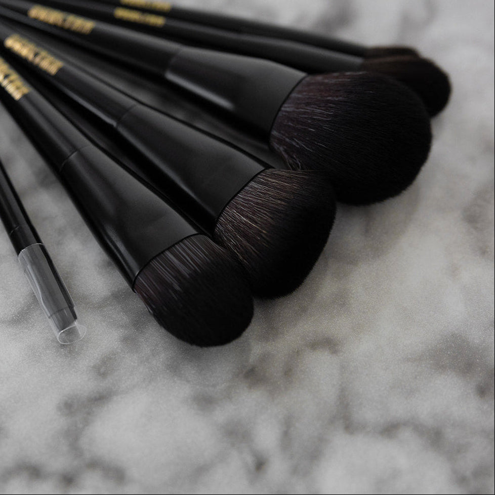 Luxury meets function with this elegant ensemble of six full-sized vegan makeup brushes housed in a sleek, travel-ready case—perfect for creating a sophisticated look in minutes.